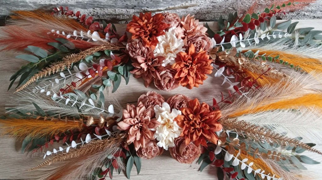 10 € : Une ambiance est composée de compositions florales et des voiles colorés correspondants.